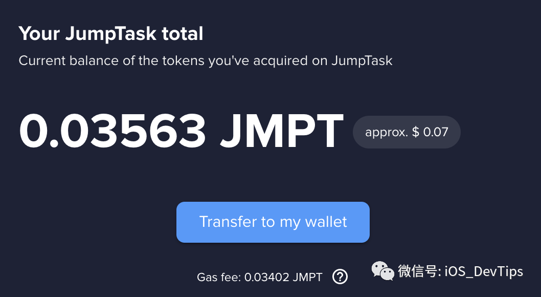 这种图是JumpTask的没有最低提现额度,但是每笔交易都有gas fee