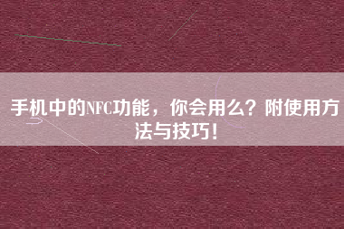总结:NFC功能已经在日常的生活中发挥着越来越重要的作用,比如有NFC模块的POS机进行便捷支付、具备闪付功能的ATM机能够支持无卡取款、共享单车支持NFC接触解锁等,具备NFC功能的手机越来越多,只有全面的认知和了解它,才能发挥它的巨大作用,不然你当它是摆设么?未来,相信厂家将持续对手机NFC做更多有益尝试和探索,为用户带来便利。NFC还具备哪些使用方法和技巧么,欢迎讨论。