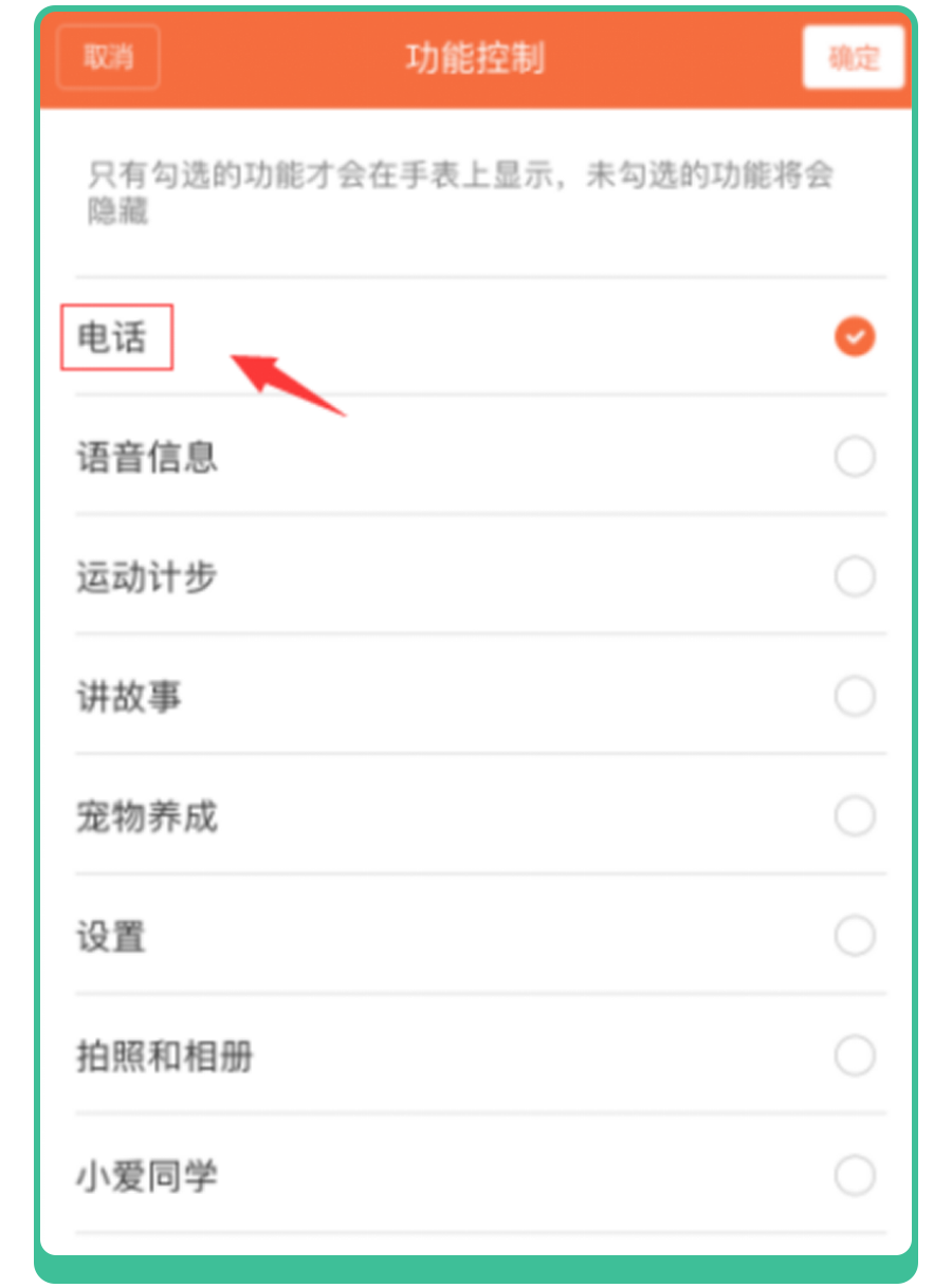 打开手机APP - 手表管理 - 功能控制 - 只勾选电话,这样电话手表就只能使用电话功能了。