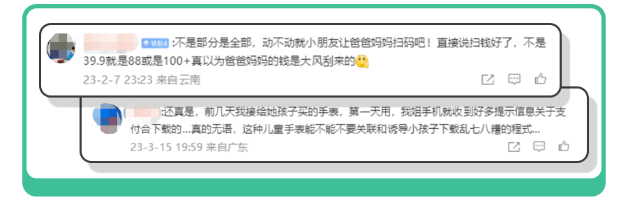 网友也说:本来是想联系孩子方便点,结果被诱导消费,这也要钱、那也要钱,我们的钱是大风刮来的吗?