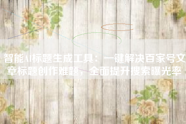 在当今信息爆炸的时代内容创作者面临着前所未有的挑战其是文章标题的创作。一个吸引人的标题往往可以决定文章的阅读量甚至传播效果。对百家号作者而言怎样创作出既吸引人又能提升搜索曝光率的标题,成为了一项关键任务。本文将为您介绍一款强大的智能标题生成工具,帮助您一键应对标题创作难题全面提升文章的搜索曝光率。 ### 百家号标题生成软件:轻松打造高点击率标题 在数字化时代,技术的快速发展为内容创作带来了新的可能性。百家号标题生成软件,是一款基于人工智能技术的智能工具,可以迅速为您的文章生成多个具有吸引力的标题。这款软件的核