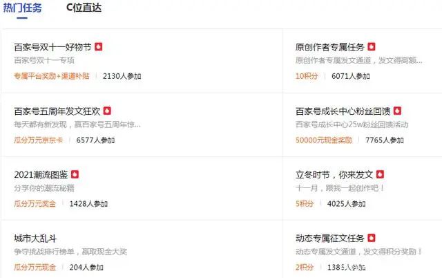 百家号首页中间的“热门任务”