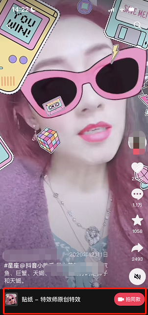 拍摄带货类短视频时,可以使用贴纸指示购物车位置/直播间入口或把需要告知的商品亮点写出来。