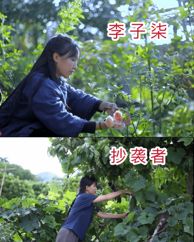 让我们来看看抄袭者和李子柒的视频对比图: