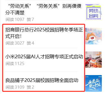渠道二:微信公众号(各高校官方公众号、XX人才招聘/考试资讯类公众号)养成浏览招聘类公众号的习惯,如一些高校的微信公众号不定时分享本地企事业单位的招聘信息和考试资讯,公众号“中国大学生就业”“大学生就业资讯”经常发布校招信息、近期考试资讯汇总等,毕业生可及时关注并投递心仪岗位;另外,在微信搜索栏中直接搜索“校招”“事业单位考试”“秋招”或某一岗位关键词,即可得到相关信息;也可通过关注当地的人才招聘类公众号(搜省份/城市+招聘/人才/直聘),扩大搜索面积,打破信息差,上岸机会更大。