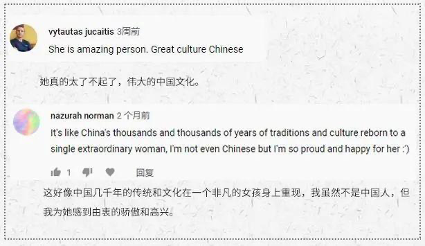 在视频中,观众的评论来自世界各地,目前她的微博粉丝超2400万,抖音粉丝超3000万,累计全球粉丝过亿,已经成为走红全球的文化名人。