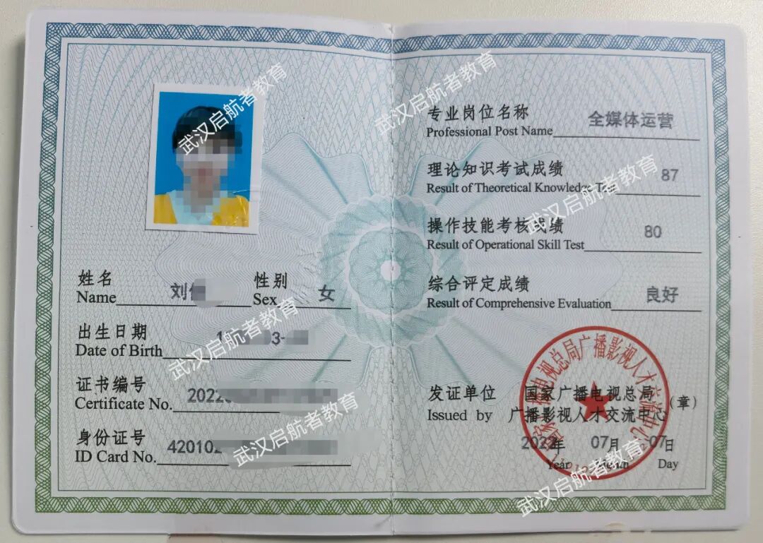 现在市面上关于全媒体运营师证书有很多种版本,这里希望大家认准我们国家广电总局授权颁发的官方证书即《全媒体运营师》合格证书(绿本)。