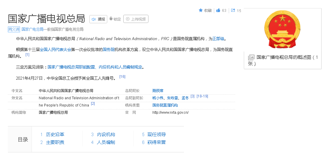 根据第十三届全国人民代表大会第一次会议批准的国务院机构改革方案,设立中华人民共和国国家广播电视总局,为国务院直属机构。
