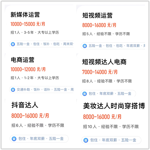 ③ 贴合时代发展,全媒体运营相关岗位缺口大,市场需求量高,非常容易融入各行各业,机遇大