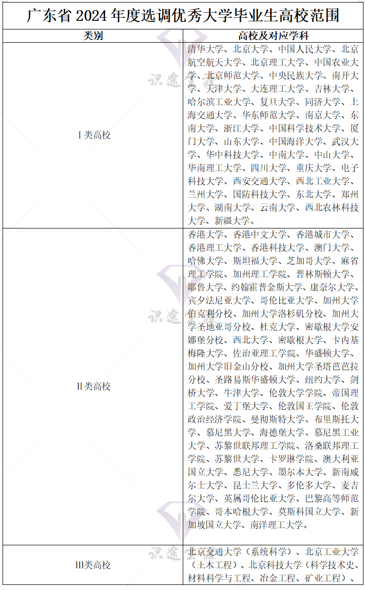 可参加广东2024年选调生的高校,分为I、II、Ⅲ、Ⅳ4类。