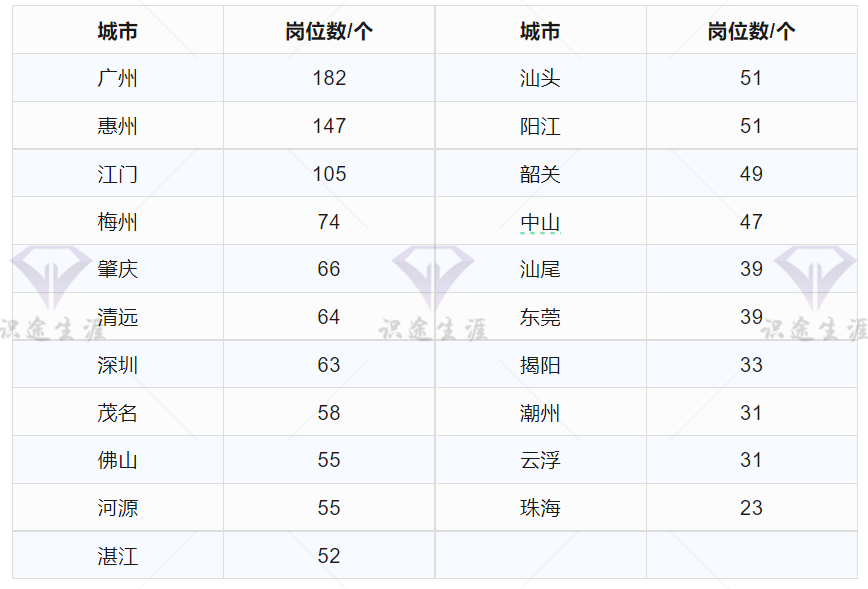 本文,将重点关注本科生可报的岗位,从城市分配、院校范围、专业要求这3个方面,介绍此次广东选调生的本科招录情况,为有志于在广东踏上公务员之路的同学,在挑选高校、专业上提供参考,及早做好准备。