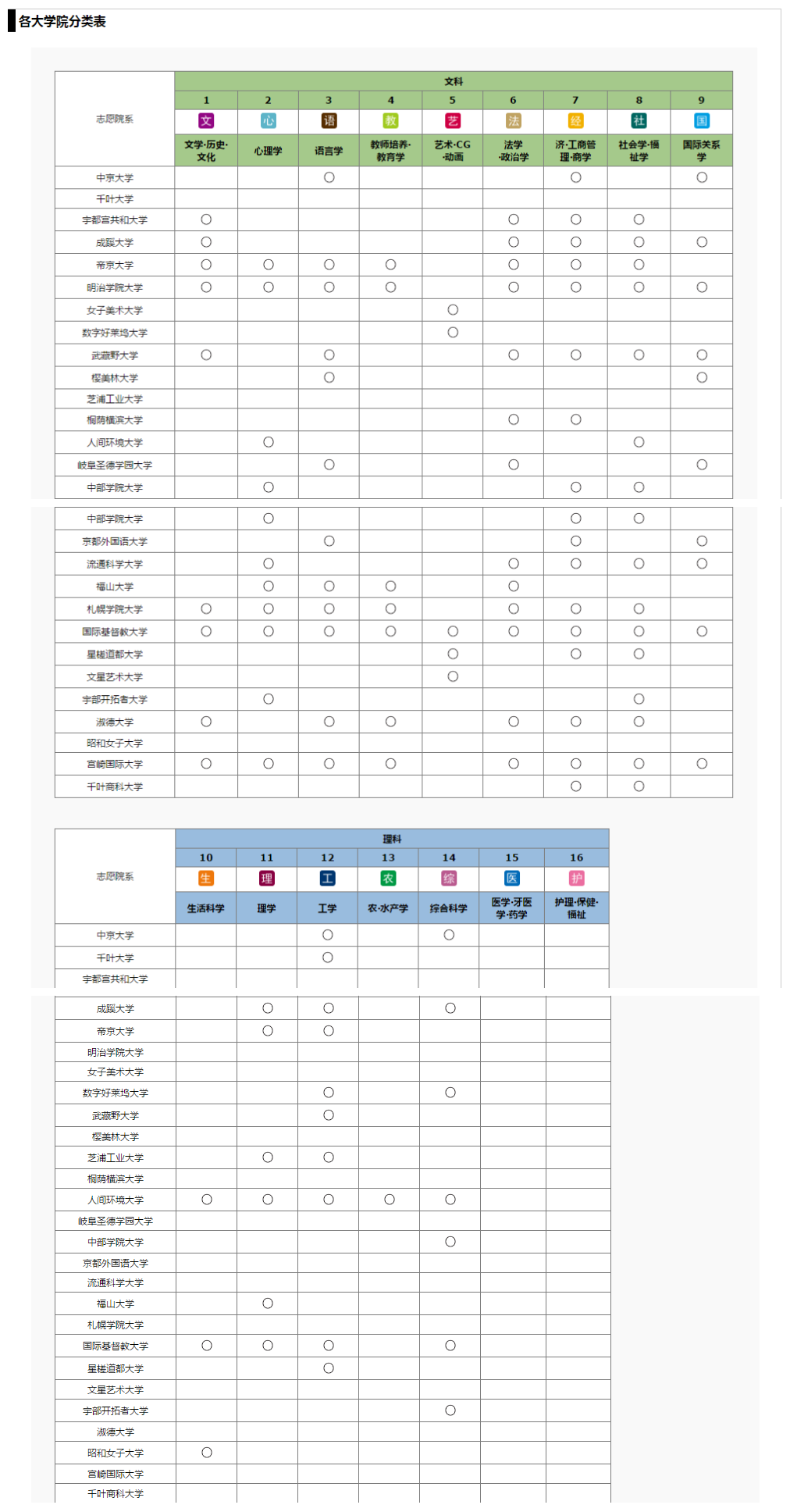 JPUE参考专业:经济学部、法学部、文学部、教育学部、理工学部