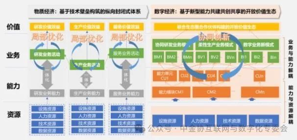 企业本质上是一个创造、传递和获取价值的系统。在物质经济时代,企业创造价值的方式是基于工业技术专业化分工取得规模化发展效率,以获取长周期的回报。随着资源、能源和环境的刚性约束的日益增强,全球物质经济发展已经从增量阶段进入存量阶段,单纯的以技术或业务为导向来提高规模化发展效率为主导逻辑的发展方式已经很难适应日益复杂的市场环境。企业需要进一步提升柔性发展和抗风险的能力,拓展增量发展新空间。