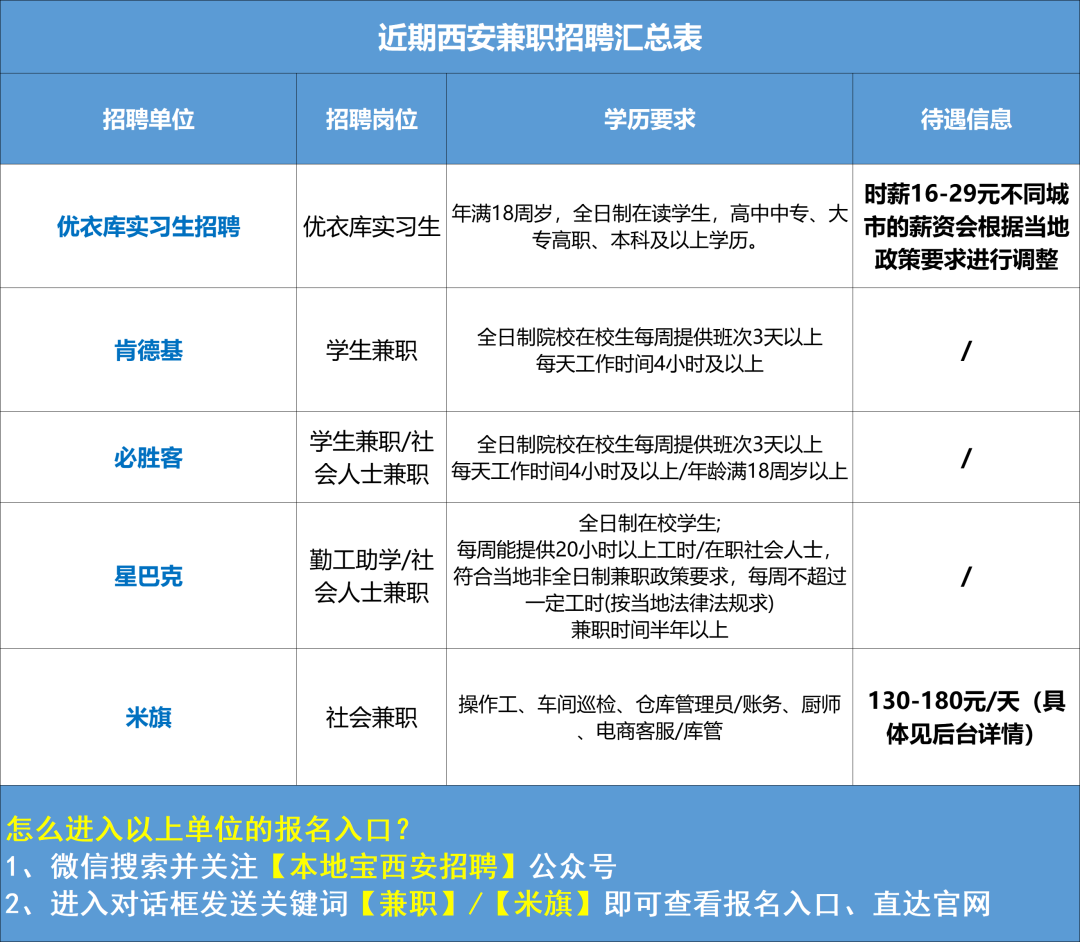 进入【本地宝西安招聘】公众号对话框中回复【米旗】即可获取报名方式。