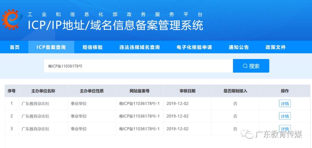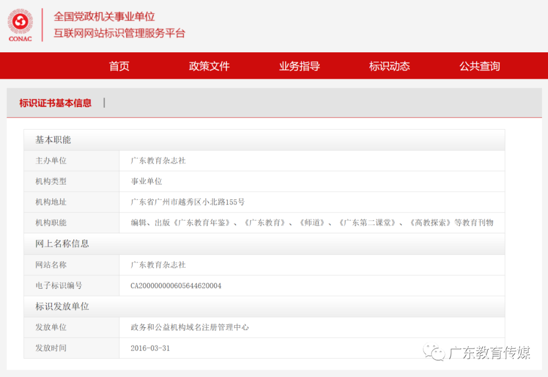 如果是事业单位或者党政机关,网站下方还会有相应的标识,点击相关标识,或到全国党政机关事业单位互联网网站标识管理服务平台(http://bszs.conac.cn/sitename?method=searchIndex),均能查询到详细信息。老师们在浏览时可要多留几个心眼。