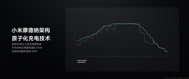 此外,先进的小米摩德纳架构还提供了更智能的原子化充电技术,平均充电功率最多增加 11kW,充电时间可缩短 9.8%,实现不同温度条件下充电更快。