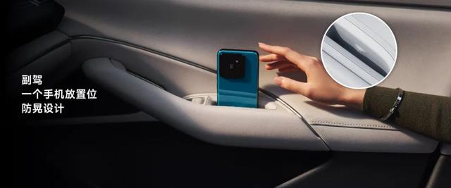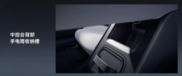 此外,全车一共有 32 处收纳设计。比如仪表板上预留了 1/4 英寸螺纹接口,能够轻松接入原生手机支架,稳定方便的放置手机。再比如中控台背部,设计了手电筒的收纳槽,可以放米家强光手电筒,亮度高、照的远,还是一个充电宝,功能非常强大。