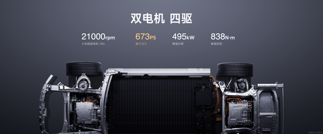小米SU7 Max 版搭载高性能四驱,最高马力 673 PS,峰值扭矩 838 N·m,还有小米超级电机 V6s,转速达到 21000 转,媲美 4.0L 涡轮增压 V8 发动机的跑车,一脚踏入“ 2 秒超跑俱乐部”。