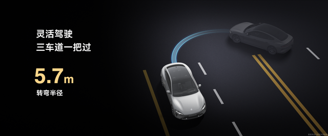 小米全栈自研的智能底盘控制算法,将智能与驾驶完美的结合在一起。所以小米SU7 开起来非常舒适,转向也非常精准,当车辆在中高速变道时,系统马上响应,开起来得心应手。另外值得一提的是,小米SU7 作为 C 级车,转弯半径同级领先,只需要 5.7m,三条车道一把过。