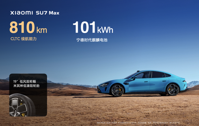 再来看看小米SU7 Max 版,它采用 101 度麒麟电池,最大实现 810km 的长续航,小米SU7 Max 是中国市场唯一加速 2 秒级、续航达成 800km+ 的电动车!(结论基于息统计所得,统计时间截止到24年3月28日)
