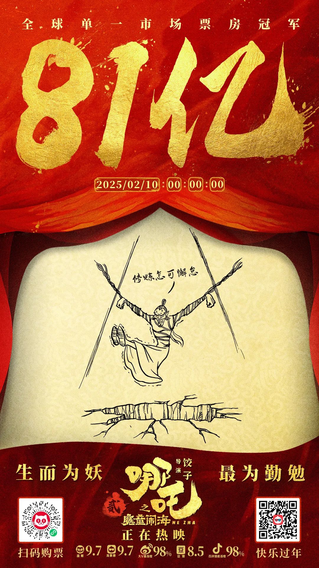 截至2月10日0时,总票房《含点映及预售)突破81亿大关!