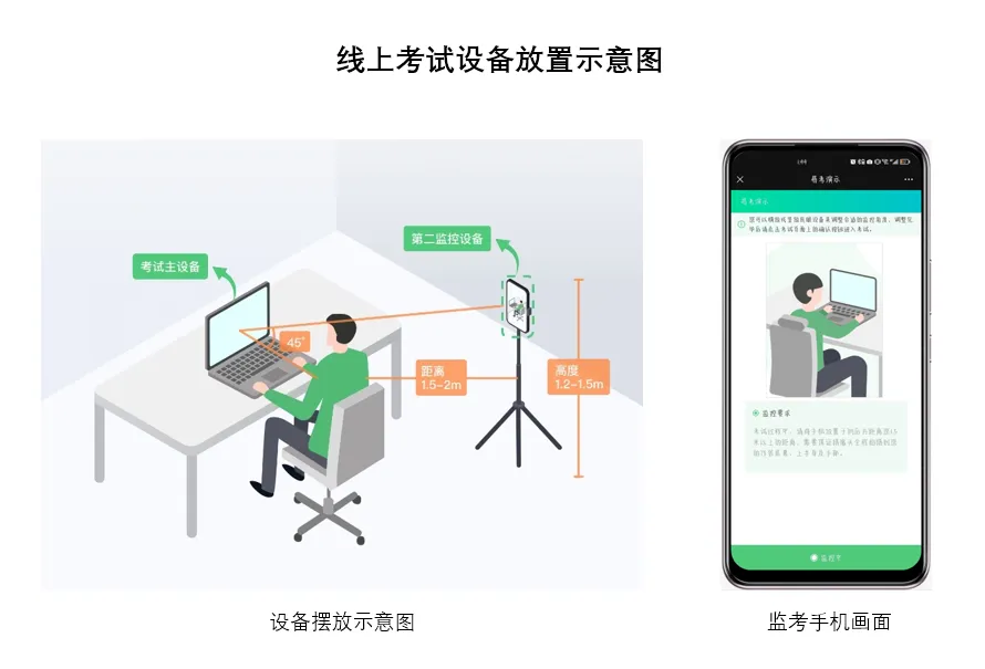 2、设备准备确保您的电脑正常连接网络,若使用笔记本电脑,请保持电量充足并全程连接外接电源。电脑需配备可用的摄像头,考试期间需全程录像,确保镜头无遮挡。另外,准备一台手机用于远程监控。