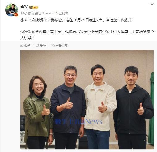 雷军晒小米15发布会首次彩排合影