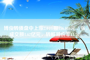 4月9日,博俊转债盘中上涨2.04%报156.086元/张,成交额1.62亿元,转股溢价率11.76%。